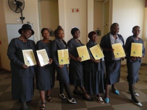 De hele groep met de certificaten. De dames hadden allemaal een pakje aan wat ze zelf gemaakt hebben….
